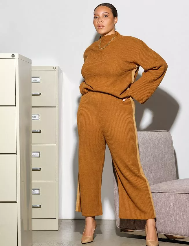 Want to squint cute while feeling just as well-appointed as you would in your pajamas? We recommend a ribbed matching set, like this getup from Eloquii. The knit pants and rubberband pull-on waist are just the cherry on top of looking uneaten tony as you turn the airplane's walkway into your own personal runway.